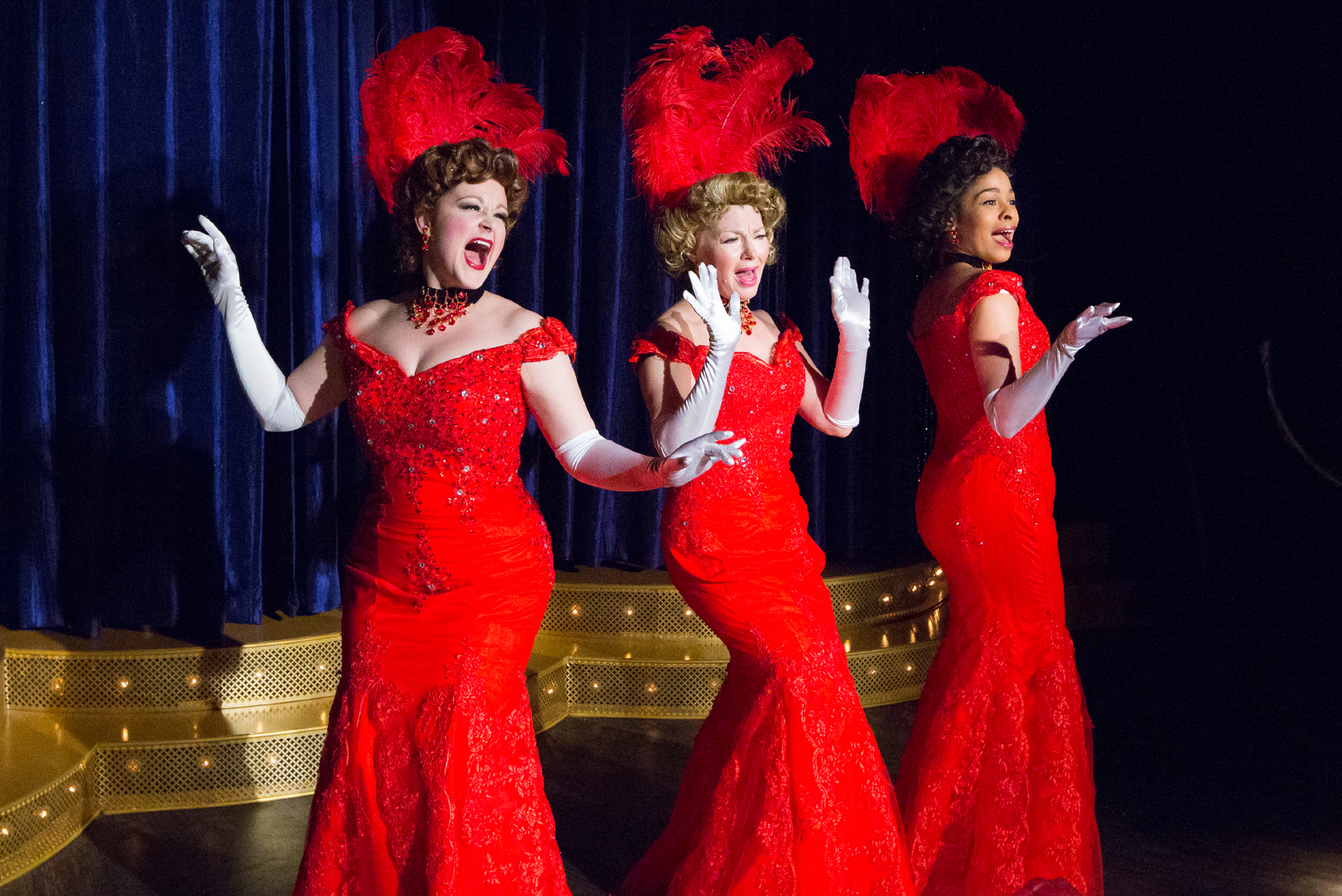The vaudeville portion of Jerry’s Girls shows off the individual talents of each woman- McCulloh’s “Take it All Off”, Wells’ “The Man in the Moon”, and Robbins’ “Before the Parade Passes By”. These highlights are topped off with Act I’s closing number, a comical performance of “Hello, Dolly!”.