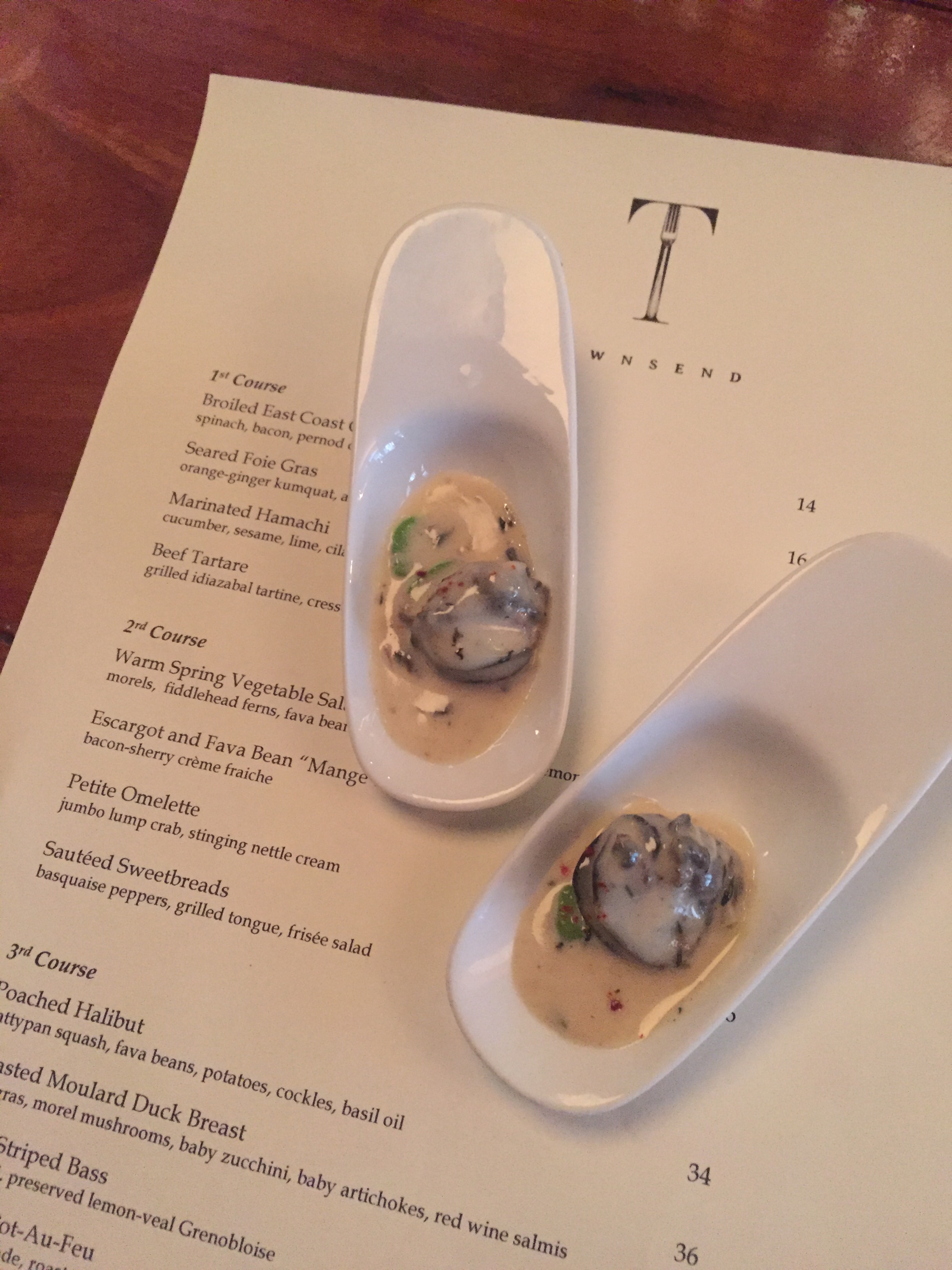 Escargot w/ bacon-sherry creme fraiche and the “Founded in 1881” cocktail (bourbon, apricot, angostura bitters and Moroccan bitters).