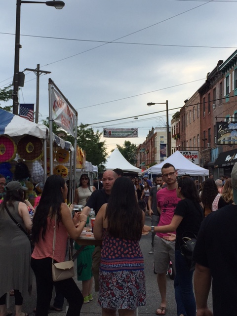 The event took place yesterday on Passyunk Avenue outside of The History of Italian Immigration Museum from 2-7 PM. Celebrating in traditional Italian style, vendors offered cannolis, fried rice balls, meatball sandwiches, and more. Guests traveled up and down the avenue touring the food and drink options and listening to live music. Vendors had photos and other items to sell, along with wine and vodka mixers. Children were also entertained with games including balloon pop, a duck river and a trampoline.