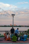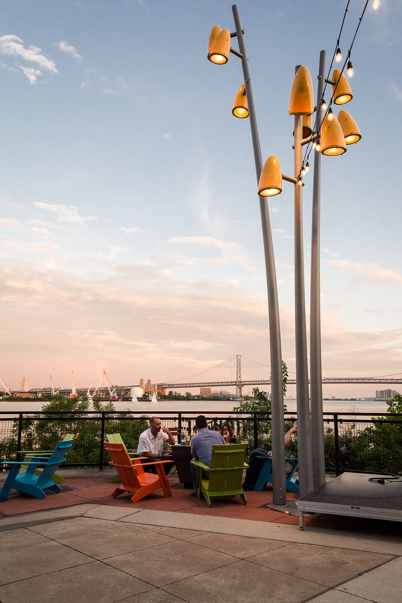 Walking down the entrance path located next to the casino, two things quickly caught my eyes. First were the incredible views of the Ben Franklin Bridge and Delaware River. Second was the stunning landscape and design. Adirondack chairs and fire pits make it easy to forget that you’re in the middle of the city as you look out onto the water. The surrounding trees, bushes and flowers put an emphasis on the garden part of the beer garden.