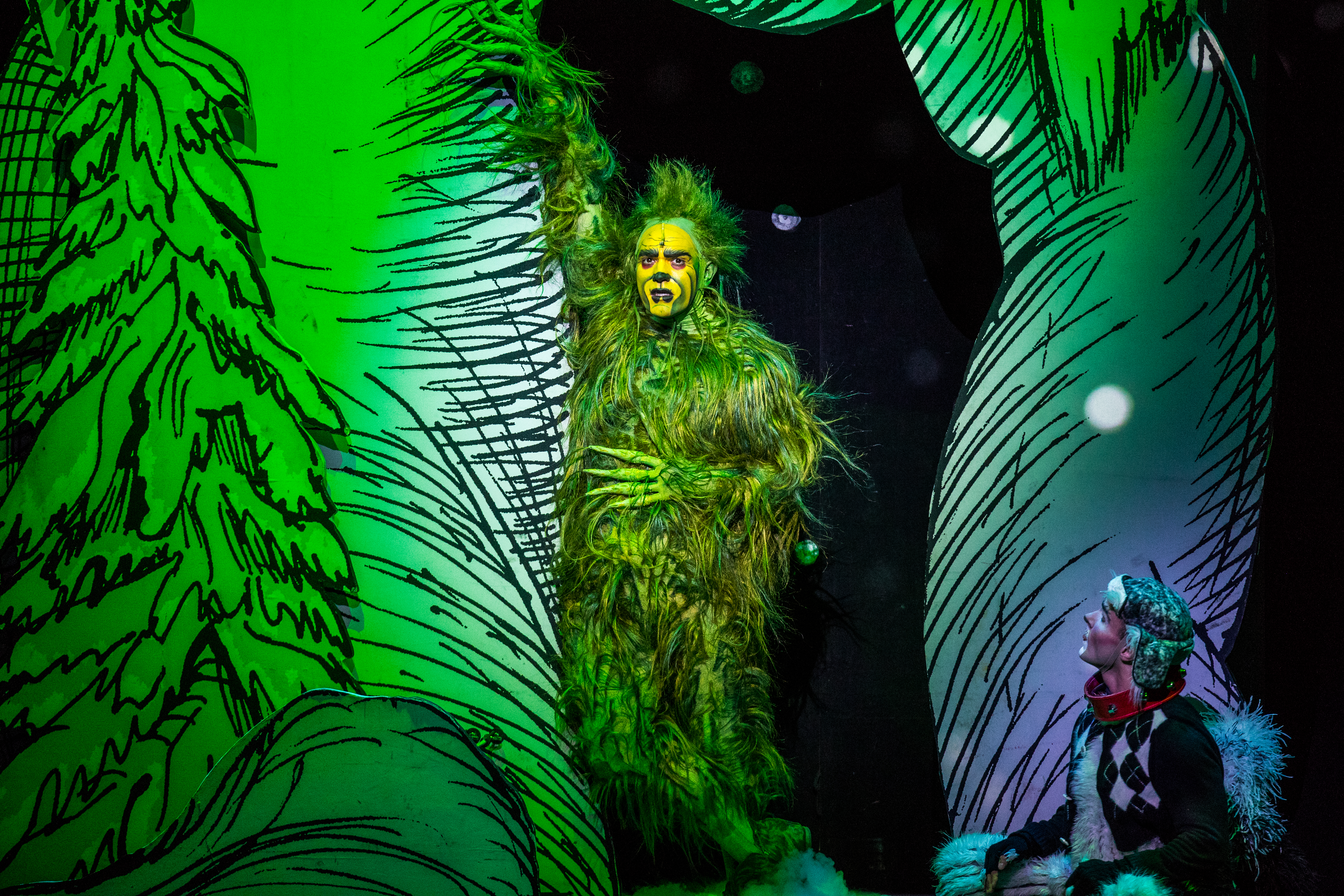 I spent a few hours with the Grinch last night! The iconic, mean, furry and green guy himself. You know him from television and movies, you know him as the guy who stole Christmas (and then gave it back?!) to the Whos, you know him because he has been a big part of the holiday season since 1957! And we, the good people of Philadelphia, are really lucky (believe it or not) to have the Grinch here (in Dr. Seuss’ How the Grinch Stole Christmas the Musical) until December 29th!