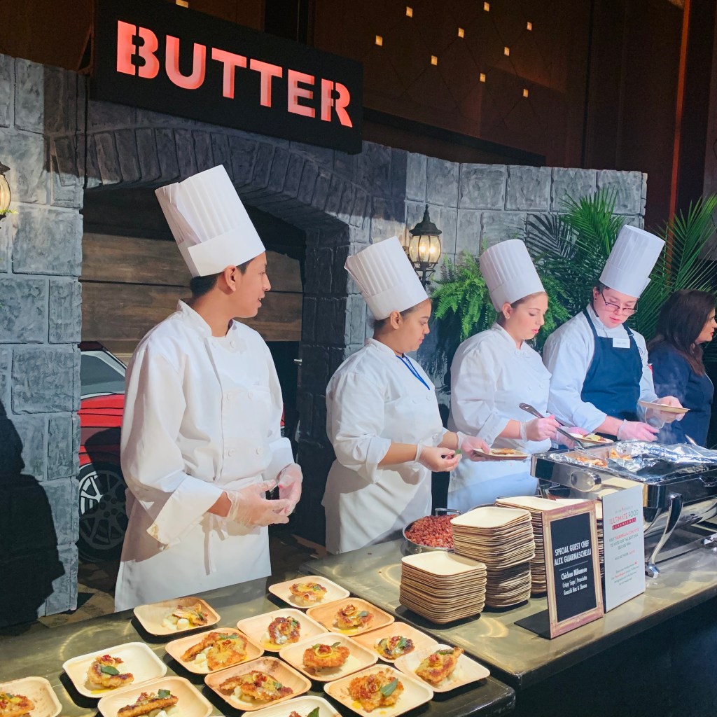 After the first food coma of the day (I do not regret the very satisfying milkshake), I headed to the event center for a press meet and greet with the chefs. I really enjoyed talking with Wolfgang Puck who told me about his restaurant in the Middle East and the Philly cheesesteak that’s on the menu there! I said hi to the rest of the chefs, enjoyed a glass of wine, and prepared myself for the main event…