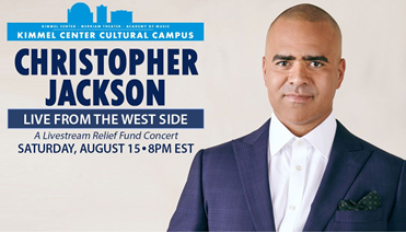 Beginning Tuesday, August 4th donations of $40+ to the Kimmel Cultural Campus Relief Fund will grant access to Christopher Jackson: Live from the West Side. Donations can be made at http://www.kimmelcenter.org.