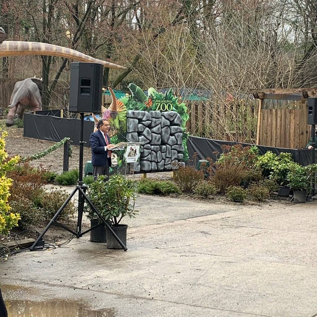 Yesterday, RowHome Rowan and I headed off to Philadelphia Zoo’s grand opening and ribbon cutting of BIG TIME: Life in an Endangerous Age. This cool new attraction at the zoo gives guests the opportunity to be up close and personal with life-sized, animatronic dinosaurs and prehistoric creatures. Twenty-four of them to be exact…