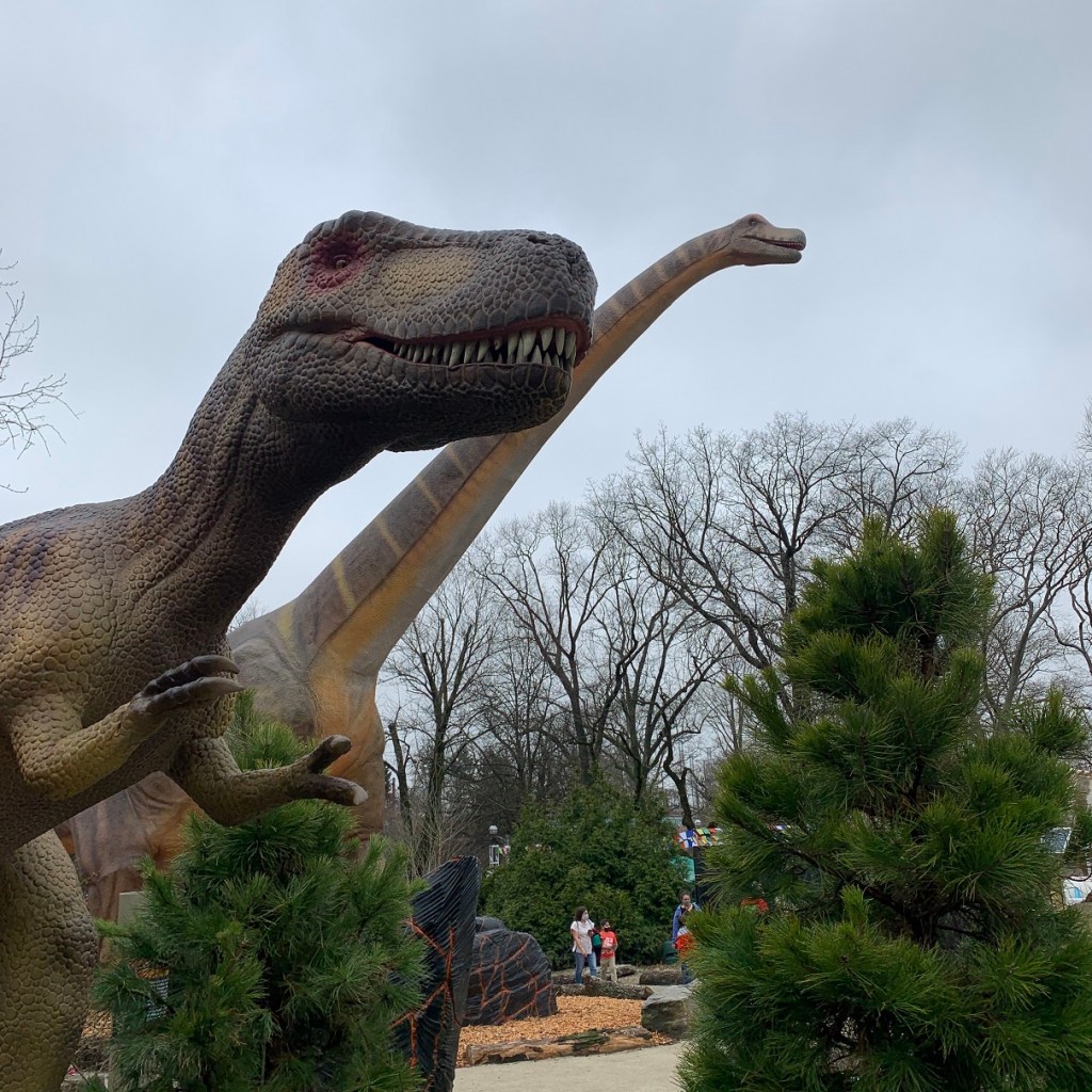 Travel through BIG TIME to learn about some of Earth’s most catastrophic events- volcanic eruptions and asteroid strikes, rising sea levels, atmospheric changes, and other disasters that caused our creatures to adapt or die off. As you walk around, you’ll discover even more with facts scattered throughout and audio tales (that you can access with a zoo key) in both English and Spanish about the dinosaurs on display. If you have a key from their brief 2019 reappearance, you can use it to unlock all of the new stories. You can purchase one at the Zoo for $3, including a new, limited-edition dinosaur key!