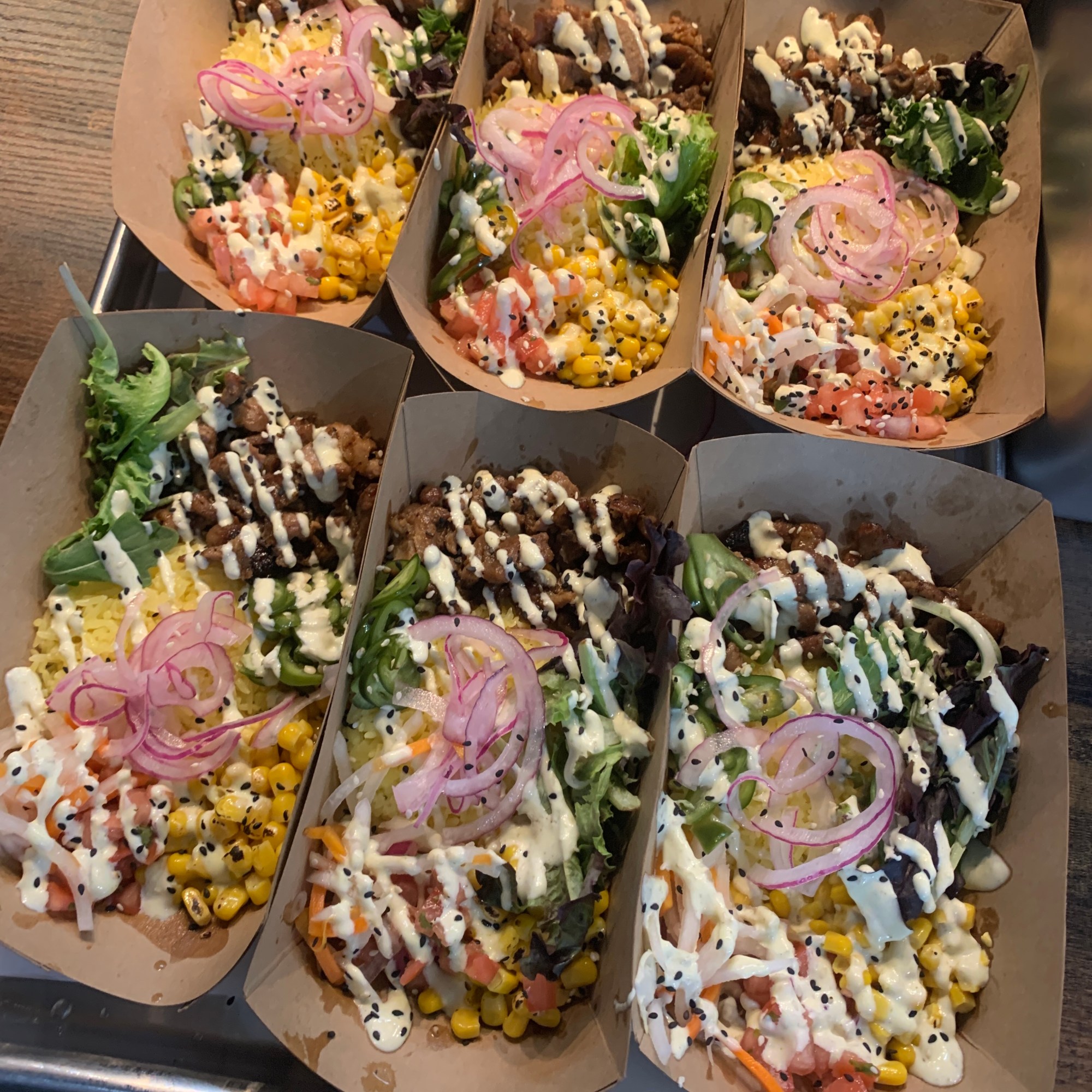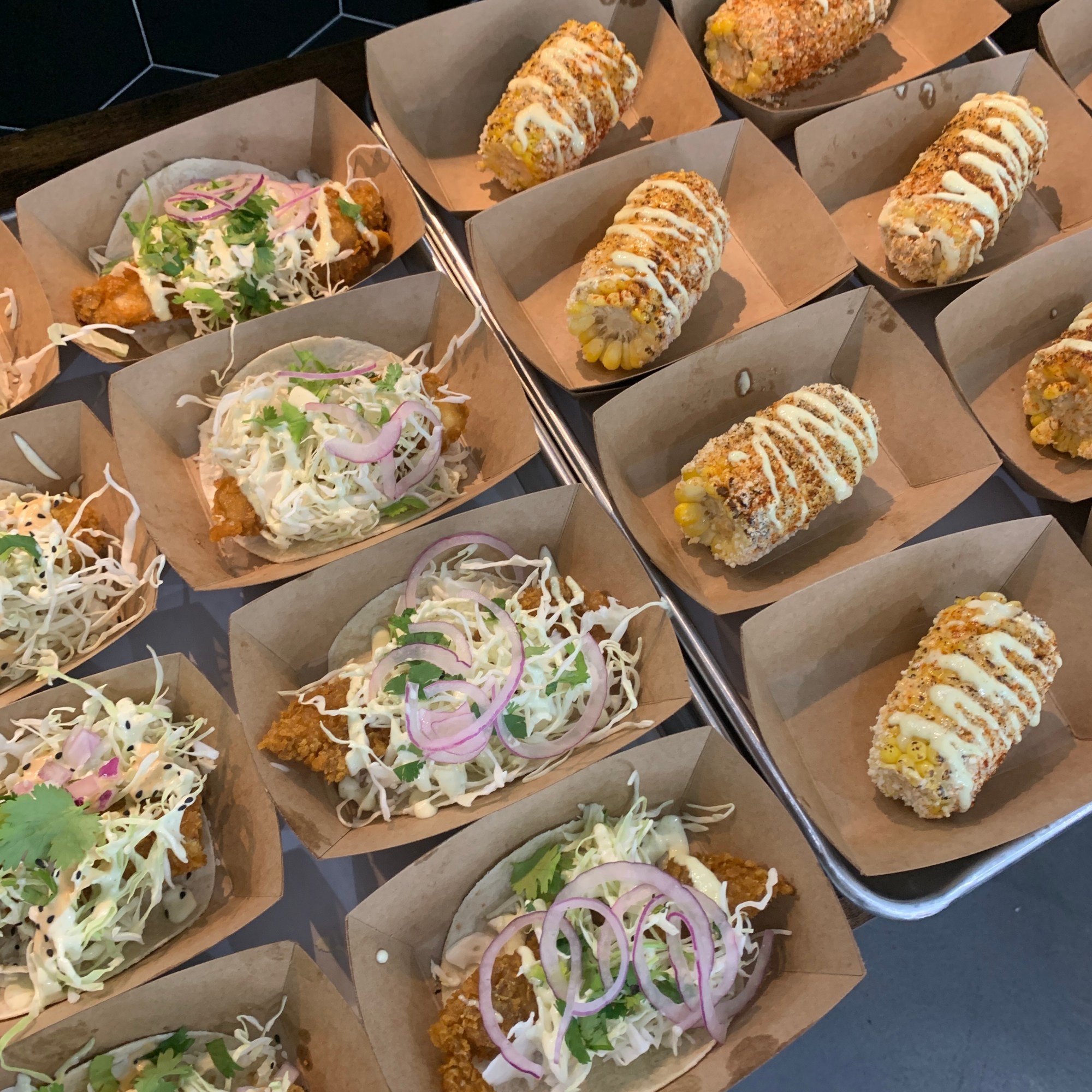 And on to the food! There are a few main options- hot dogs, tacos, burritos, quesadillas, and rice bowls. The hot dogs come with some wild toppings! I tried the Chicka Dog with garlic lemongrass chicken and sweet chilly spicy mayo- just to name a few of the things this dog comes with! There’s also one with Vietnamese beef shortrib and another with calamari! And they come on a toasted sesame seed roll! Tacos- also insane with options that include popcorn oyster mushroom, tofu, fish, lemongrass chicken and more. Building a bowl, burrito or quesadilla is great because you can mix and match the amazing flavors available at Coney Shack. No matter what you pick, the coco curried corn is a must. And good luck picking between the sauces- lemongrass aioli, sweet chilli spicy mayo, cilantro lime crema, fire roasted salsa verde, burnt salsa arbrol! See the menu for yourself here. Lucky for us, we got to sample a bit of everything in bowl form and when I return, I’ll be prepared with my choices!