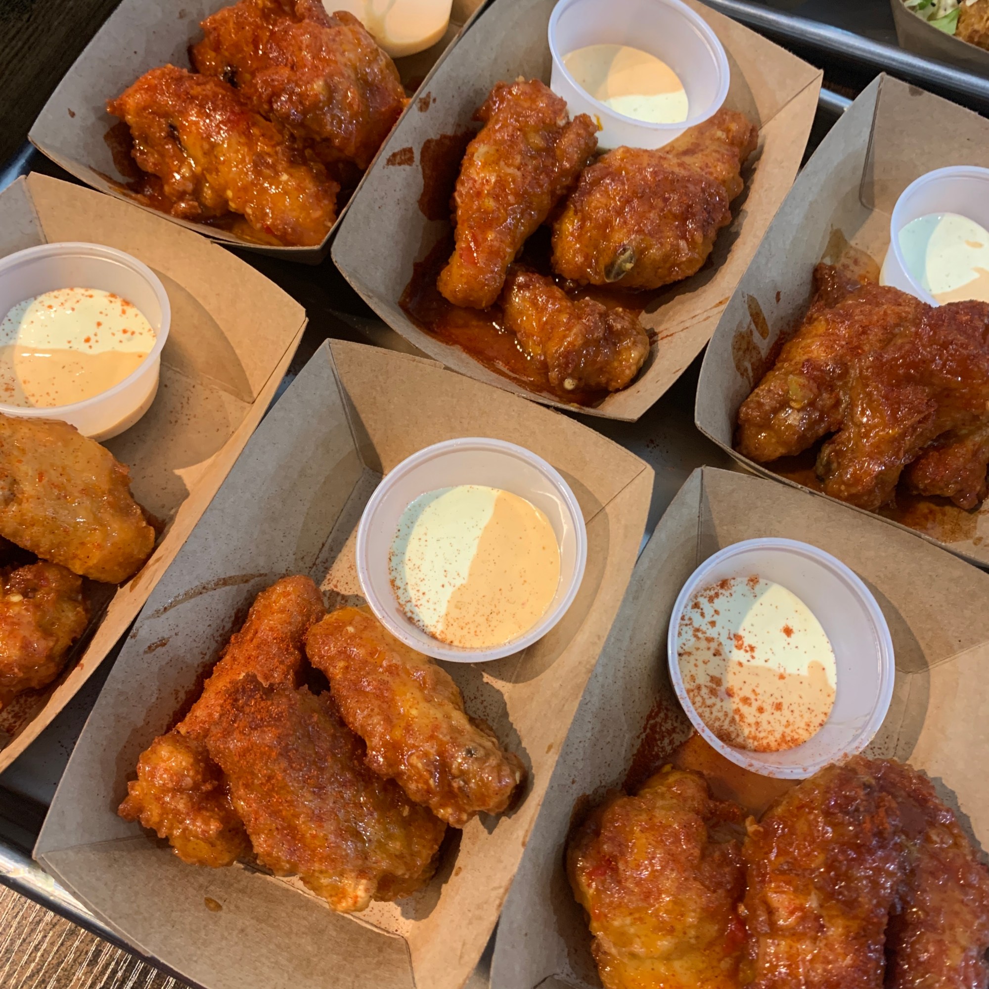 Side options include elotes (yes, order this!), waffle fries (because who doesn’t want fries with their hot dogs), and wings (available in honey siracha or scotch bonnet).