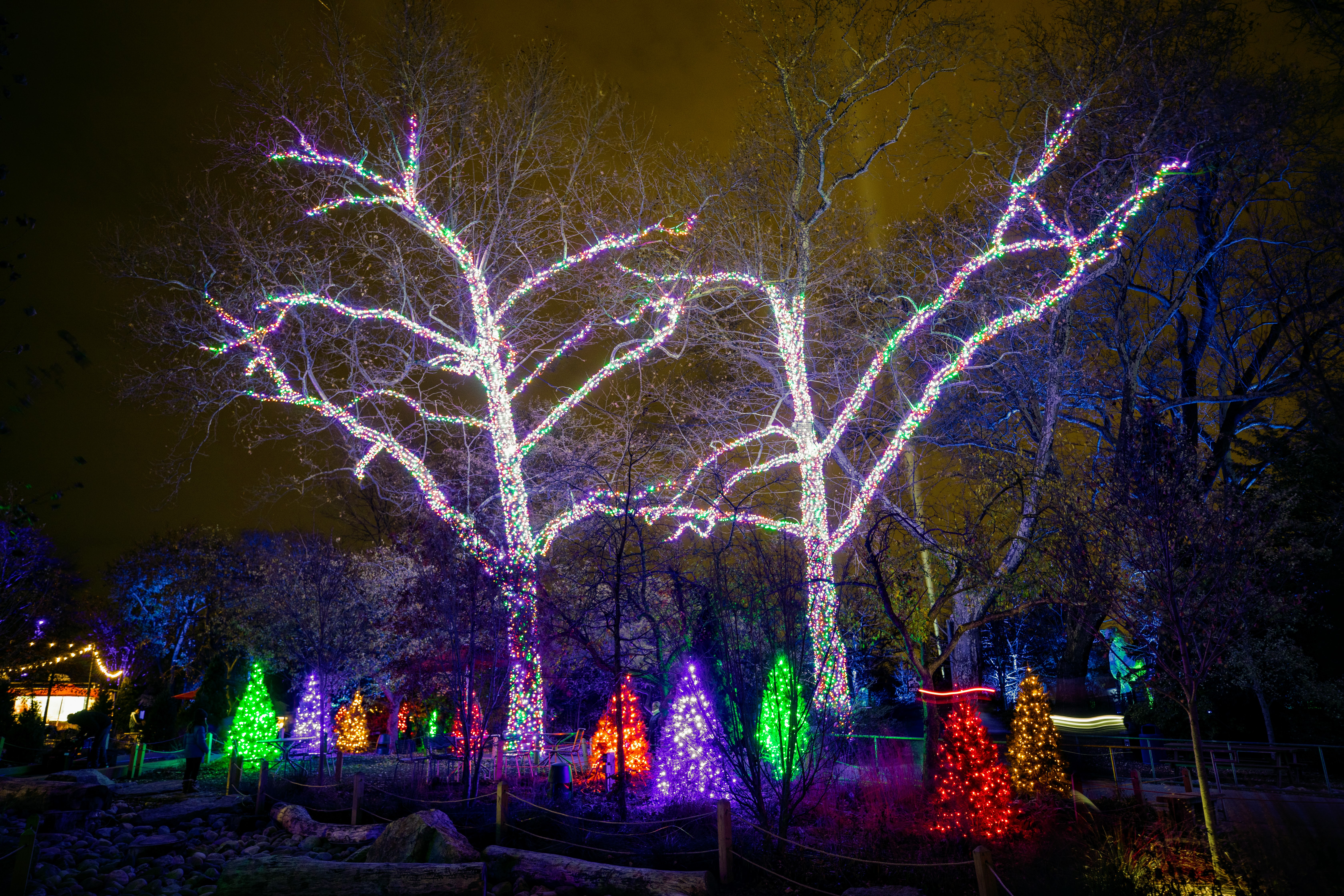 * Welcome to LumiNature will showcase cascading blue and white meteor light showers welcoming guests from 34th street to Girard and past the Zoo to the parking garage area. On the Zoo’s main plaza, five 80-foot-tall London Plane trees will be wrapped in stunning blue lights creating a fun and festive atmosphere for everyone, living, visiting or passing through the area.