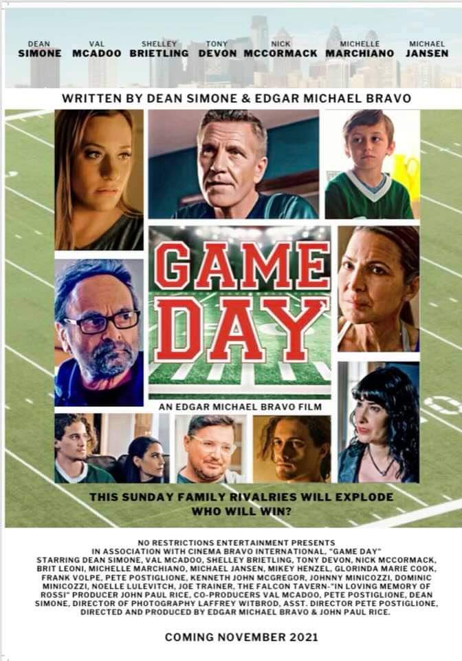 Philadelphia-based independent film producers Pete Postiglione and Val McAdoo announce the World Theatrical Premiere Event of GAME DAY at the MJ Freed Theater Saturday, November 13, 7:00PM. GAME DAY, a locally-made independent feature film, is an authentic, powerful and touching story about a loyal Italian American family of Eagle fans, the Fortes, who always enjoy good food, drinks and Eagle’s football every Sunday… until today.