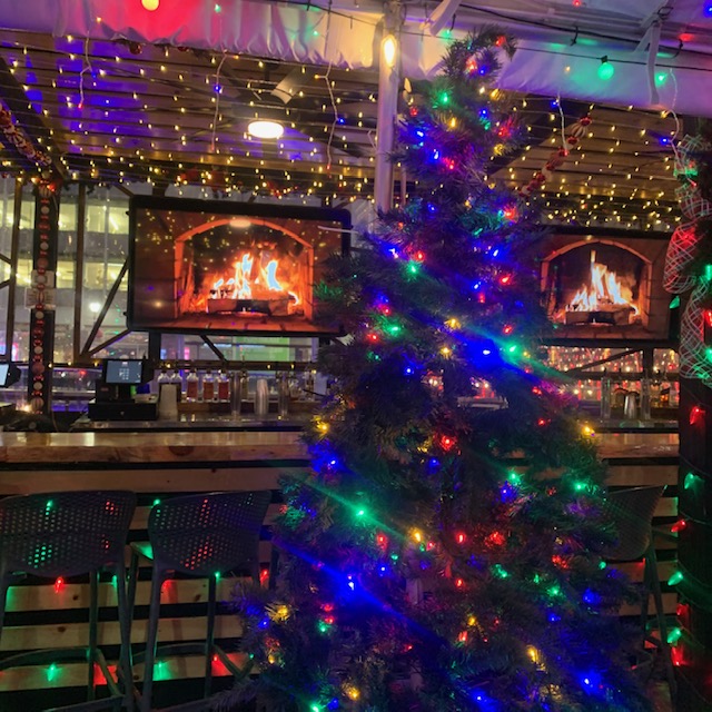 If you’re familiar with Uptown Beer Garden, you know a portion of it is outside. So bundle up! But the main bar area is tented up so you can relax with some drinks, sit at the many tables, and let the virtual fireplaces warm your cold heart (if you’re the Grinch that is…and he may make an appearance).