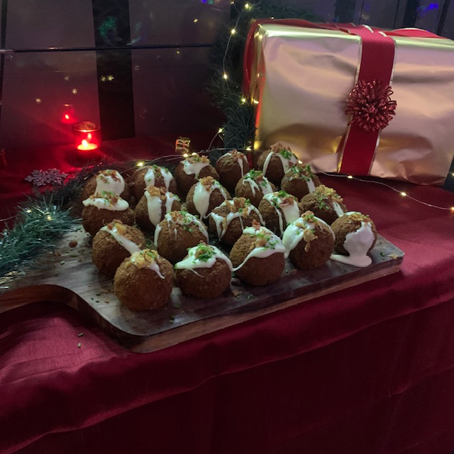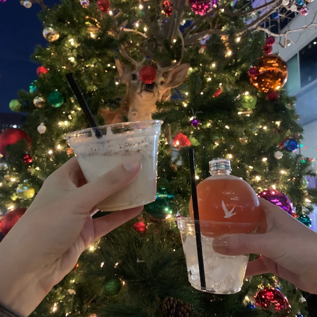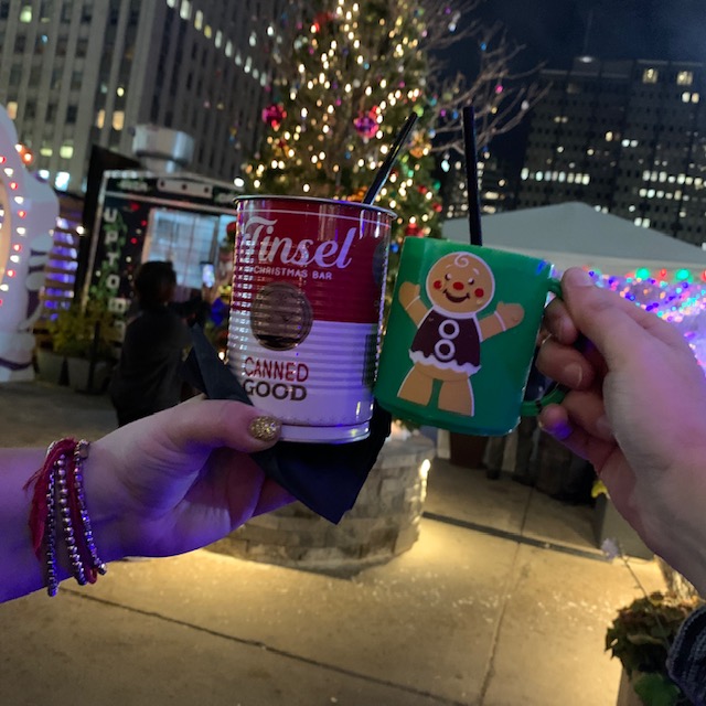 Cocktails, of course, will get you in the Christmas mood. Some come in cute commemorative cups too so you can always think about your time in U-Ville! I sampled the U-Ville Coquito which is one of my favorite holiday drinks, and the Pecan Pie with Jim Beam vanilla, butter pecan whiskey and ginger beer. My friend had the cider and Grey Goose in a Pear Tree (which comes in a little ornament). But the menu has around a dozen to pick from with ingredients like cinnamon, mint, orange, champagne, and maple to highlight the holidays.