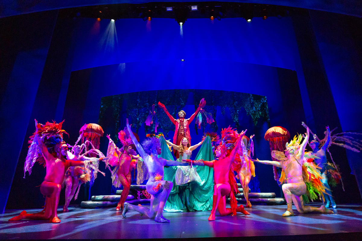 The cast is outstanding and you’ll see some familiar Walnut Street Theatre performers like Rebecca Robbins (a wonderful Ursula, and in her 19th WST show!), Ben Dibble (you’ll love him as Chef Louis, especially during the comical “Les Poissons” along with Dana Orange as Sebastian) and Sean Thompson as Eric! Diana Huey makes her WST debut as the most fantastic Ariel. As a Helen Hayes Award winner for her portrayal of Kim in Miss Saigon, she’s the real deal! She’s Ariel! And those familiar The Little Mermaid songs come to life all over again through Huey.