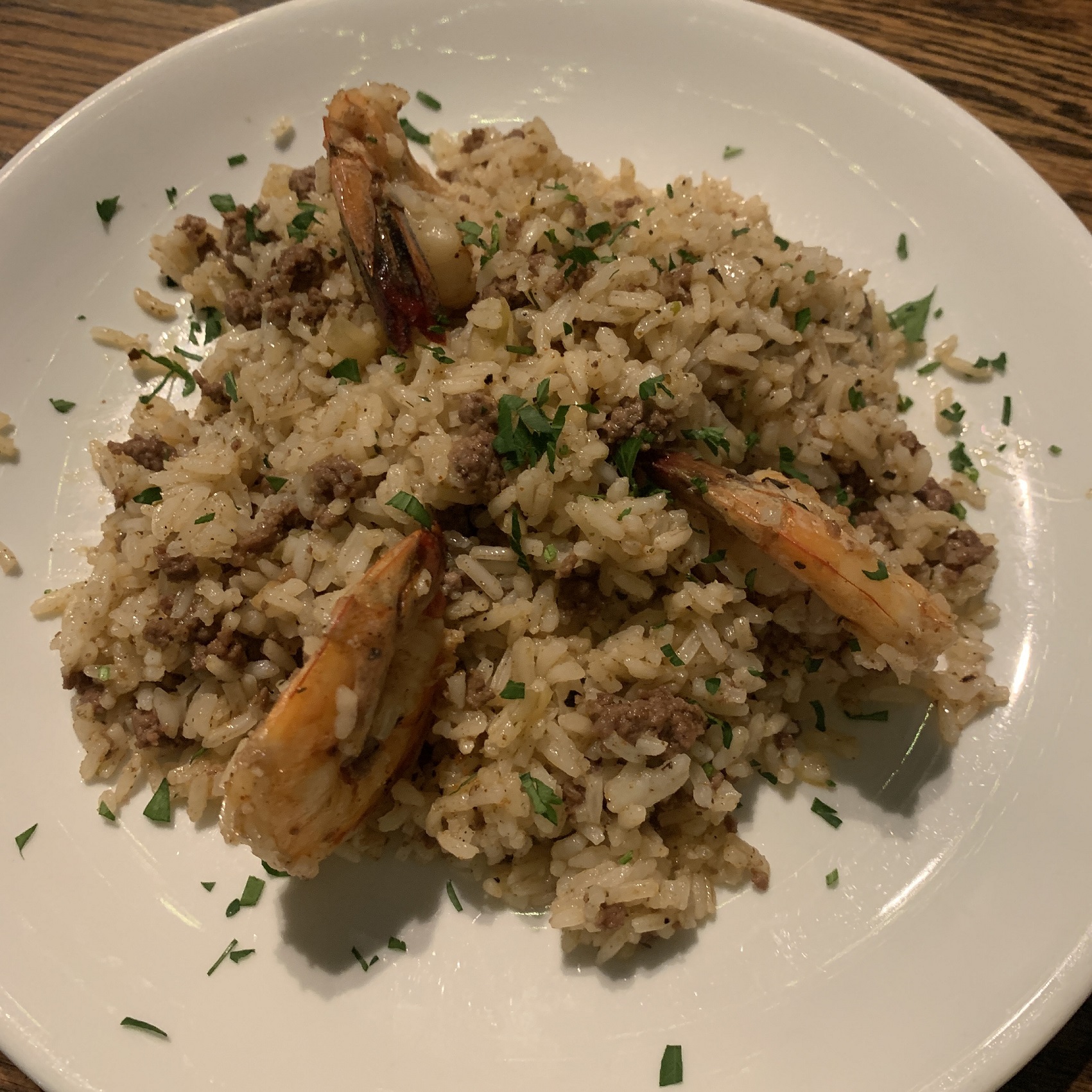 There are some big Louisiana tastes on the appetizer menu too. We tried the King Cake Fries which are fun and festive, and the Dirty Rice which was incredible!