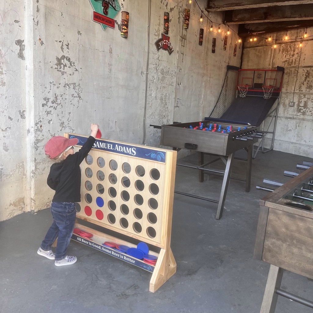 I decided to stop by for dinner with my three-year-old. The Manayunk location now has a new game room with foosball, Skee-Ball, basketball, a big bucket of chalk, and more. It’s totally friendly and free to play.