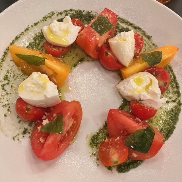 It’s not going to be easy to pick something off the antipasti menu! You have to at least share a starter; they range from light options like the burrata caprese (shown here) and tricolor salad to dishes like meatballs, eggplant parmigiana, and grilled octopus. Everything on this portion of the menu was calling my name. But there’s nothing quite like fresh heirloom tomatoes and burrata. I made the right choice.