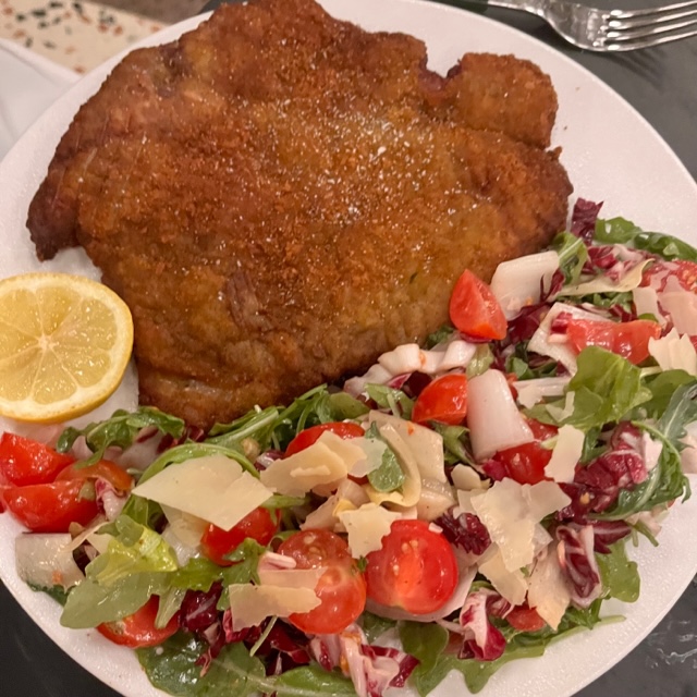 The veal was perfectly breaded and while I only had a few bites (my husband’s order), I’d definitely recommend it. The endive and arugula salad was beautifully put together. The Scottish salmon and roasted lemon rosemary chicken also were also potential choices. Next time!