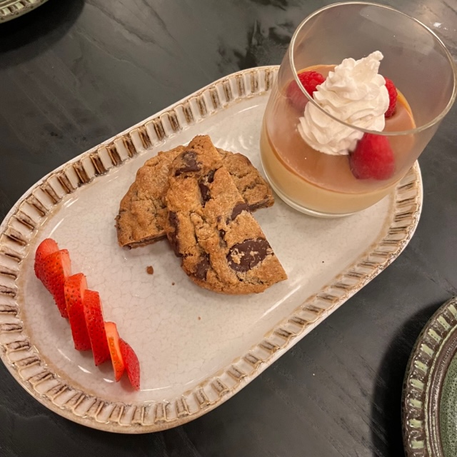 There were a handful of desserts- tiramisu and affogato are on the menu, of course. But the butterscotch budino seemed like a great option to share. It was creamy and light, with fresh strawberries and a chocolate chip cookie cut into two.