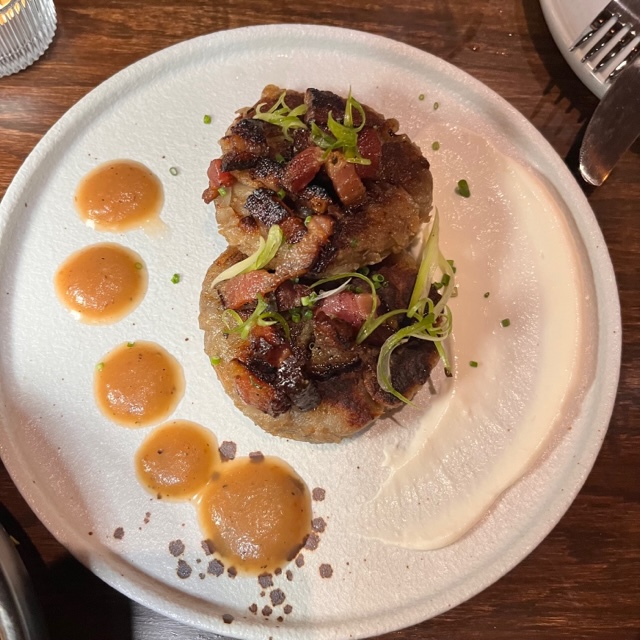 If Brussel sprouts are on a menu, I usually order them. At Restaurant Aleksandar you can get a basic dish like the one above or add on bacon lardons, caramelized onions and/or roasted peppers. The potato pancakes include a lemon sour cream and you should absolutely order these. The cabbage rolls are a good option if you want something heavier than a salad but not too filling.