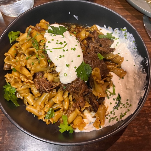 The entrees were some of the best I’ve had recently. I sampled my friend’s gnocchi which was crispy and very flavorful. A couple of the menu items include mushrooms, this is one of them. They worked well with this plate, as well as in the short rib pasta which I would definitely order again. The pasta was perfectly cooked, the dish was steaming, and the horseradish creme fraiche mixed with a bite of braised beef…just wow. I would eat this all day. My other friend finished off her duck confit before I could even steal a bite! But I did have a few forkfuls of the spatzel and that was great.