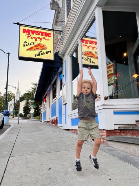 Also in Downtown Mystic. One restaurant on my list was Bank & Bridge Brewing which had a nice selection of beers and cocktails, located in an old bank. Also kid friendly with a kids menu. But it was pretty crowded and since it was next door to the original Mystic Pizza location, we obviously went there instead. None of us were super hungry so we ended up splitting a pizza with bacon and peppers, and a few drinks. Despite being a bit of a tourist spot, the pizza was actually delicious and we considered going back another night as well. I had an amazing cucumber lime hard seltzer from Whalers Brewing Company here and regret not tracking down any to bring home. Our server was very kind to bring Rowan two kids cups (when he was on the fence about Sprite or water).