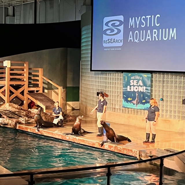 Get here early! We were there just after it opened and by the time we left- almost three hours later- lines were forming. I came to Mystic on a field trip in fifth grade and have vague memories of this aquarium, but I knew it was a good one! The belugas were cute, we touched some sting rays, and watched the adorable sea lions in a show (don’t miss it). There’s an add-on Jurassic Giants exhibit with 4D movies, dinosaurs and reptiles too. You can see more video footage on my TikTok.