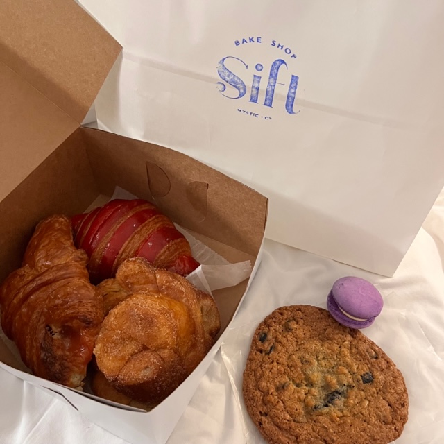 We went back to the shopping area to check out some stores that were closed Friday. Shoutout to Mystic Disc, a wonderful used record shop that had a small collection of CDs…including a Spice Girls single that I once owned way back when. The owner of the shop told me to just take it because he could tell how much it meant to me. Please support your local record stores and indie bookshops. Protect them at all costs! We discovered a great little nanobrewery called Barley Head and I enjoyed an incredible Sauvignon Sour. Then back to Sift Bake Shop where the line seems to always be out the door (and well worth it). Sift is owed by Adam Young, a “Best Baker in America” winner on the Food Network.