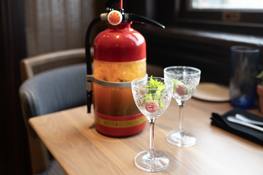 Bottomless mimosas are offered for $35 per person for 2 hours, and, paying homage to the building’s history and origin as a fire station, there’s even a cocktail available in a Fire Extinguisher vessel.