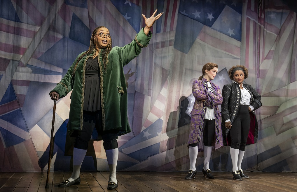 Feature photo: Liz Mikel as ‘Benjamin Franklin,’ Nancy Anderson as ‘Thomas Jefferson’ and Gisela Adisa as ‘John Adams’ by Joan Marcus