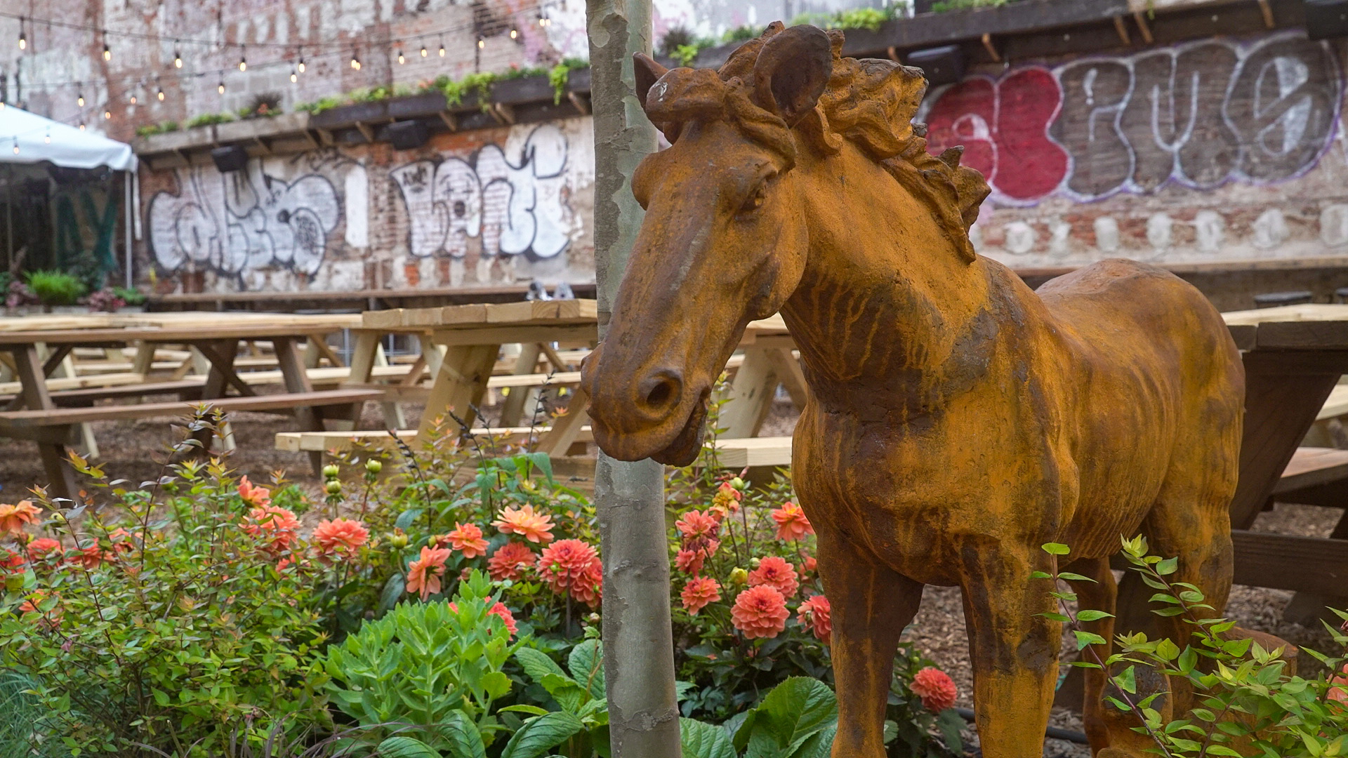 A 40’x60’ canopy tent will offer a reprieve from hot summer days while guests relax at a number of communal benches and tables throughout the garden. Families are encouraged to bring their little ones to enjoy the children’s play area, which will house an additional garden area with benches, planters and a wooden Jeep complete with a slide. A jumbotron featuring a sound system will showcase sporting events, host movie nights or even be used for special events.
