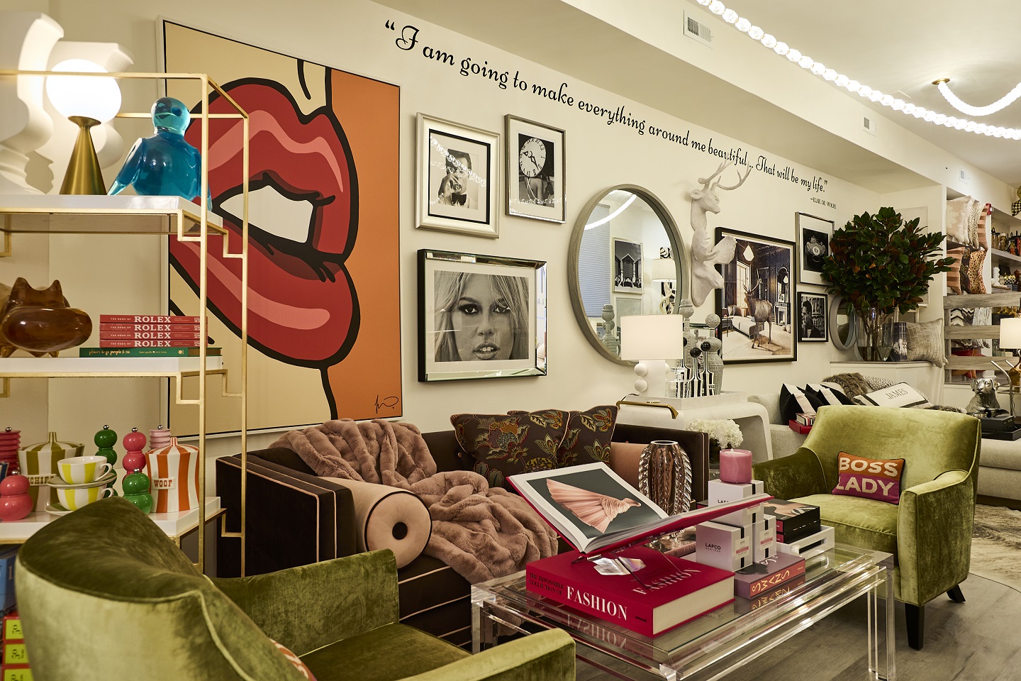 The new 1500 square ft. showroom highlights furniture and accessories from Jimmy’s private label collection. Pieces include upholstered furniture, an assortment of custom pet sofas – made with the same level of detail and quality as the furniture collections, JAMES teddy bears and his luxury candle collection. Additional offerings include a full-service interior design studio as well as a curated collection of furnishings and gifts from his favorite designers including Interlude, Joe Cariati, etúHOME, Global Views and more.