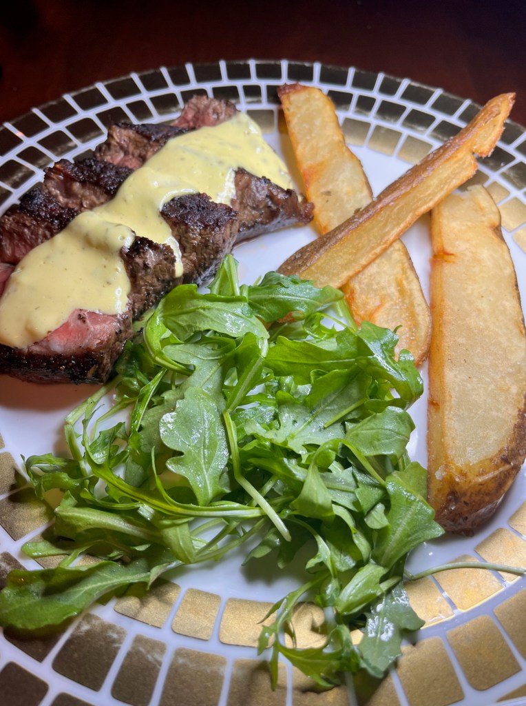 Steak Frites and Masala Roasted Cauliflower (fantastic crispy chickpeas).