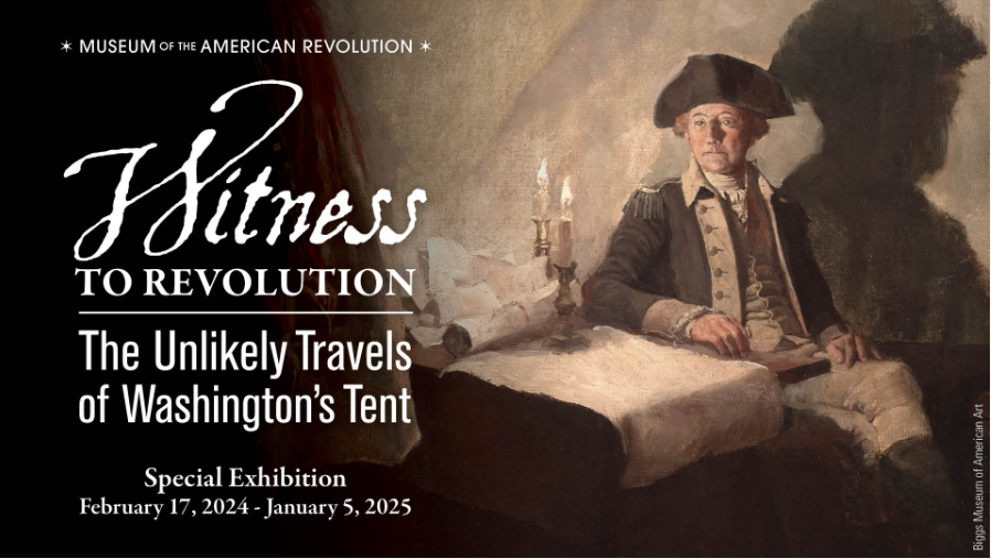Join the Museum of the American Revolution over Presidents Day Weekend, Saturday, Feb. 17 – Monday, Feb. 19, 2024, for the opening their newest special exhibition, Witness to Revolution: The Unlikely Travels of Washington’s Tent. Throughout the weekend, explore the life, leadership, and legacy of George Washington and the diverse range of people with whom he interacted through discovery carts, pop-up talks, crafts, and more offerings that uncover the lesser-known stories of Washington’s 18th-century world.