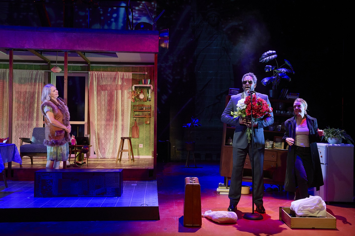 Playwright Sasha Denisova was inspired to write this play based on the online chats she had with her mother during the invasion. Though we don’t know Mother personally, cast member Holly Twyford does an excellent job bringing Denisova’s words to the stage and giving audiences a glimpse of her mom’s personality. Stage Sasha (Wilma HotHouse member Suli Holum) speaks directly to the audience, allowing us to imagine- along with her- the situations she has created in her head as a way to cope with the fears of having family members in Kyiv at the time. Did President Zelenskyy, President Biden, even God, actually drop in to visit Mother at her home? And one of them uses a jar of pickles as a weapon?! Well, Sasha likes to think so and these fantasy scenarios are a hilarious way to shine some good vibes onto a not-so-great situation. Lindsay Smiling, HotHouse member and Co-Artistic Director, portrays many of the characters both Mother and Sasha talk about (dare I say his animated impression of Biden is worth the cost of the ticket alone).