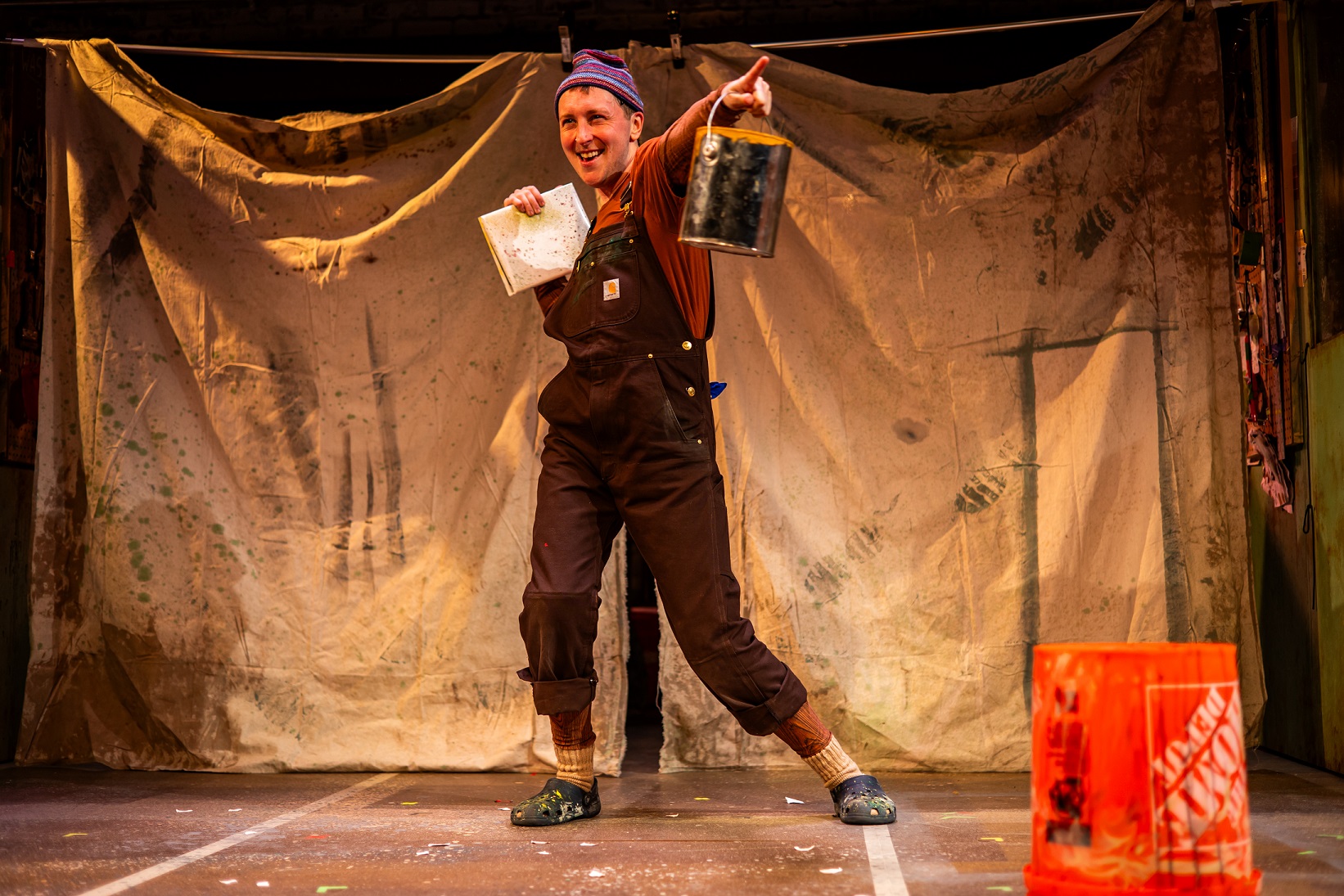Based on the tale written by Carlo Collodi in 1881 and adapted by award-winning playwright Greg Banks, Pinocchio is an entertaining 90 minute tale (plus intermission) at Arden’s intimate Arcadia Stage. When audiences arrive, they’ll meet four painters who are working on the walls of an empty theatre. Once the painters find out they’re expected to tell us the story of Pinocchio, they scramble to come up with a way to bring the characters to life by using only what they have in their workspace- paint brushes, mops, ladders, tables, tools. And audience, you’ll be asked to help too!