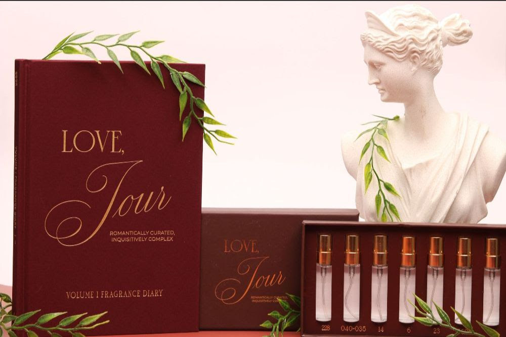 Jordan Lee Cook, Founder of Loomen Labs in Queen Village, is embarking on another business venture that combines her passions for perfume-making and writing. Love, Jour is an online business where customers can purchase Jordan’s fragrance diary and the seven corresponding eau de parfums that tie into the writing within the diary.